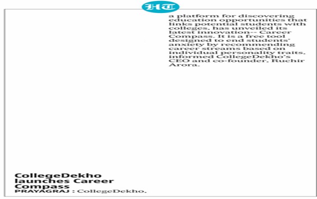As we all know, the education sector is highly competitive, and there are various platforms offering career guidance. To stand out from the competitors, we convey the message in the regional language to resonate with a wide range of audiences. Also, we use online platforms to connect with students who want to make informed career choices. CollegeDekho Career Compass gets print coverage in CAT A Paper such as - Hindustan Times, Hindustan, The Pioneer, Dainik Jagran, and more. It is covered online in The Print, The Week, ANI, PTI, and more.